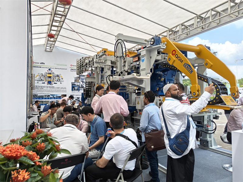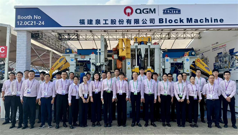 По време на Canton Fair QGM проведе двойна изложба на щандове 12.0 C21-24 на открито и 20.1 K11 на закрито. Компанията подчерта своята напълно автоматична машина за производство на тухли ZN1000-2C, представителна машина за формоване на бетонни блокове от висок клас. Интегрирайки усъвършенствани китайски и немски технологии, тази машина се гордее с изключителни предимства като висока ефективност, висока прецизност, ниска консумация на енергия и интелигентна технология, демонстрирайки напълно водещата позиция на QGM в интелигентното производство и оборудването за зелени строителни материали.