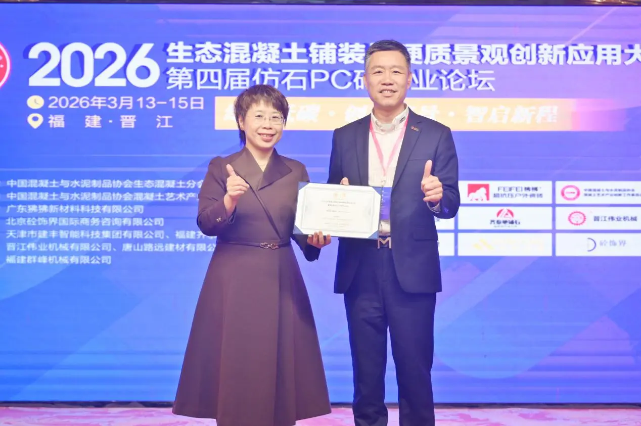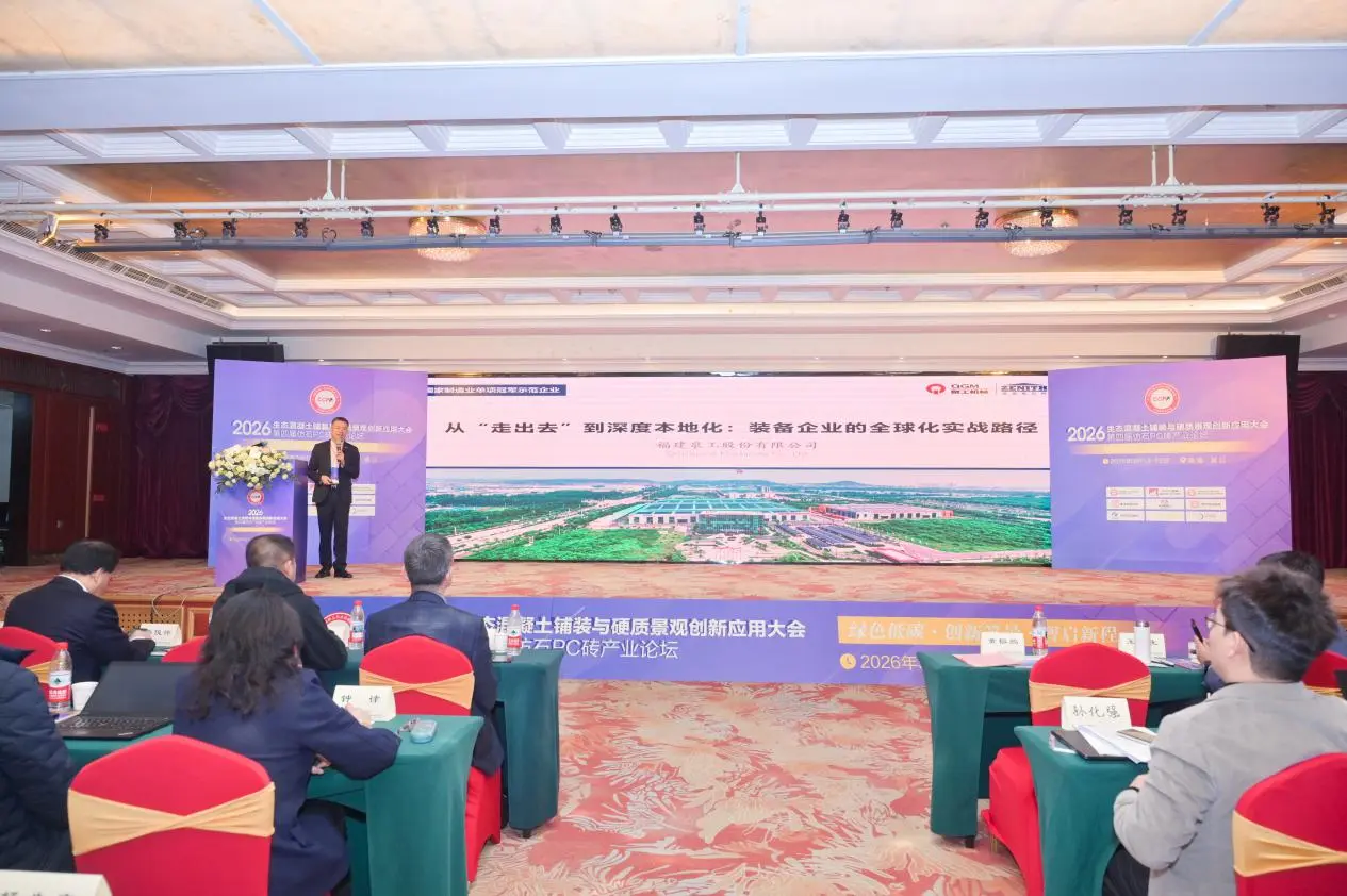 От 13 до 15 март 2026 г. Конференцията за иновативни приложения на екологични бетонни настилки и хардуер, заедно с 4-тия индустриален форум за PC тухли от имитация на камък, се проведе в Jinjiang, Fujian. Конференцията, озаглавена „Екологични и нисковъглеродни: иновативни пейзажи, интелигентно очертаване на нов курс“, събра експерти, учени и корпоративни представители от области, включително научноизследователска и развойна дейност, производство, проектиране, строителство, тестване и производство на оборудване. Заедно те проучиха иновативните пътища за развитие на екологичните бетонови настилки и индустриите за твърд пейзаж. ФудзиенQuangong Machinery Co., Ltd.беше поканен да присъства на събитието, където създаде изложбен щанд, за да покаже технологичните постижения на компанията и цялостните системни решения в сферата на оборудването за производство на бетонни продукти.