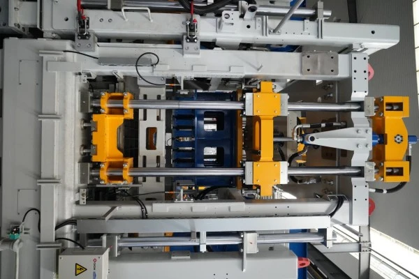 3Автоматична система за бърза смяна на формата Автоматичната система за бърза смяна на формата на Zenith се основава на координираната работа на множество устройства, което позволява интелигентна, бърза и прецизна смяна на матрицата. След като формата се транспортира до основната машина, тя се поставя върху модула за смяна на матрицата чрез повдигаща система. Системата автоматично завършва процеса на смяна на формата без ръчно манипулиране, позициониране или заключване.